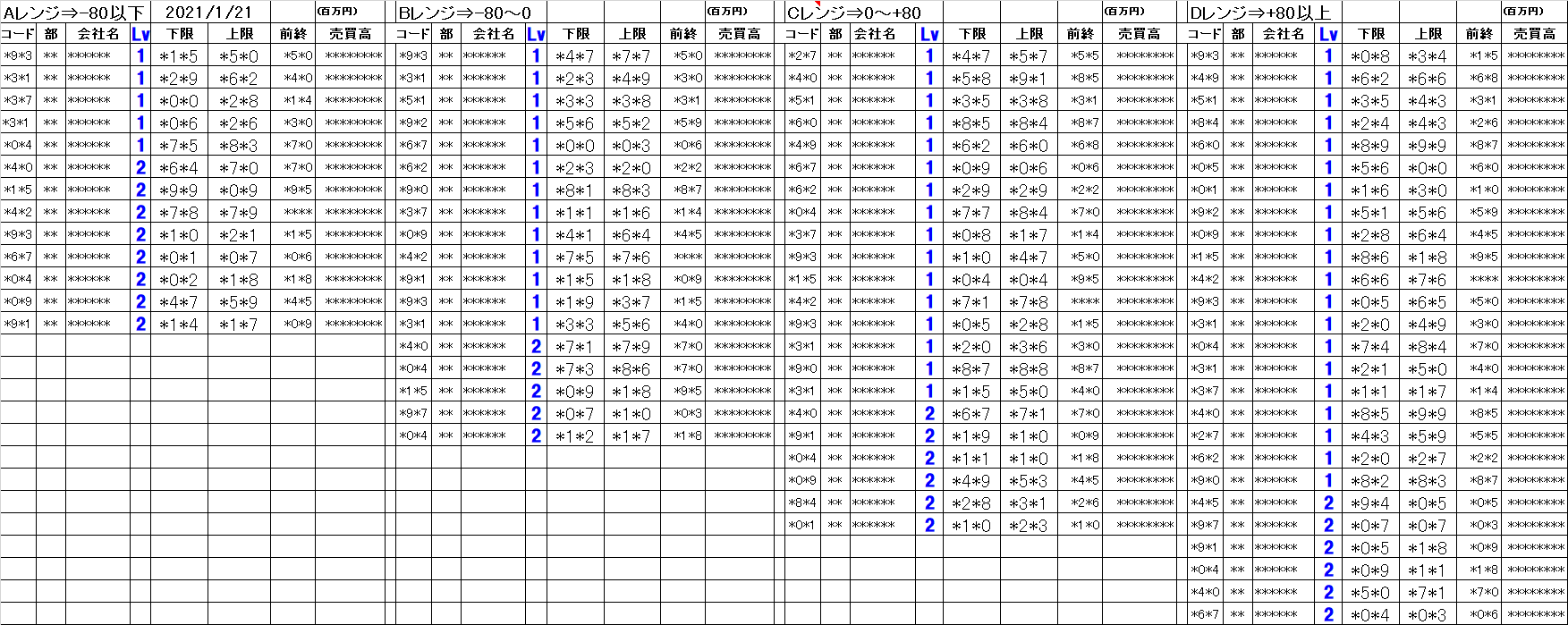 2021/1/21(木曜日)のシステムトレードの仕掛候補一覧はこんな感じです。