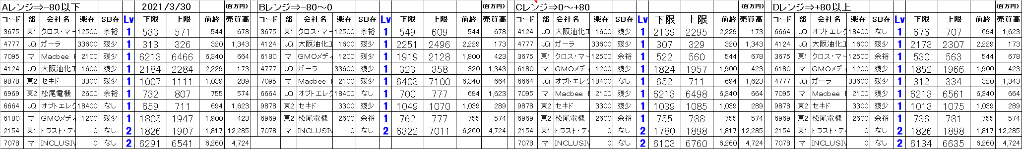 2021/3/30(火曜日) 今日のシステムトレードの仕掛候補一覧です。