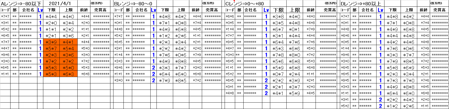 [Aレンジ:-80円以下][Bレンジ:-80円~±0][Cレンジ:±0~+80円][Dレンジ:+80円以上]