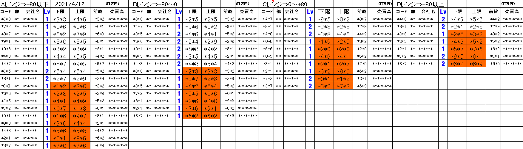 [Aレンジ:-80円以下][Bレンジ:-80円~±0][Cレンジ:±0~+80円][Dレンジ:+80円以上]