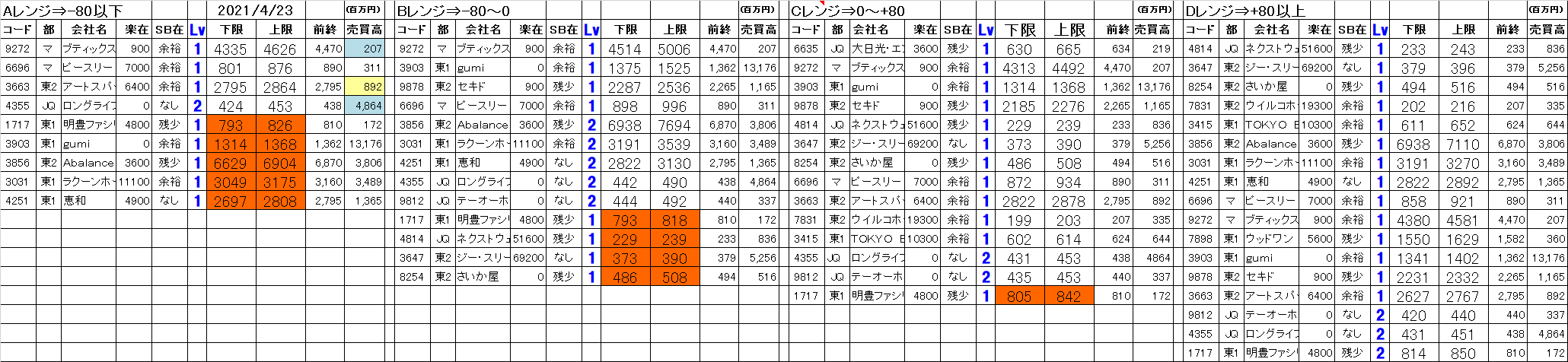 2021/4/23 今日のシステムトレードの仕掛候補一覧です。
