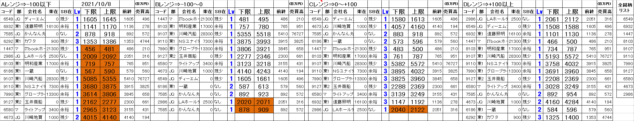 2021年10月8日 今日のシステムトレードの仕掛候補一覧です。