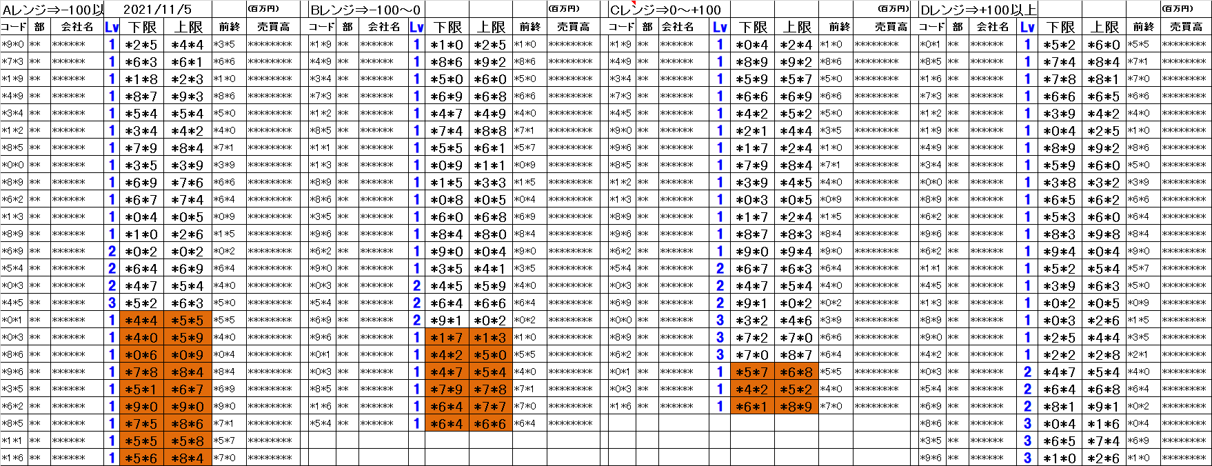 [Aレンジ:-100円以下][Bレンジ:-100円~±0][Cレンジ:±0~+100円][Dレンジ:+100円以上]