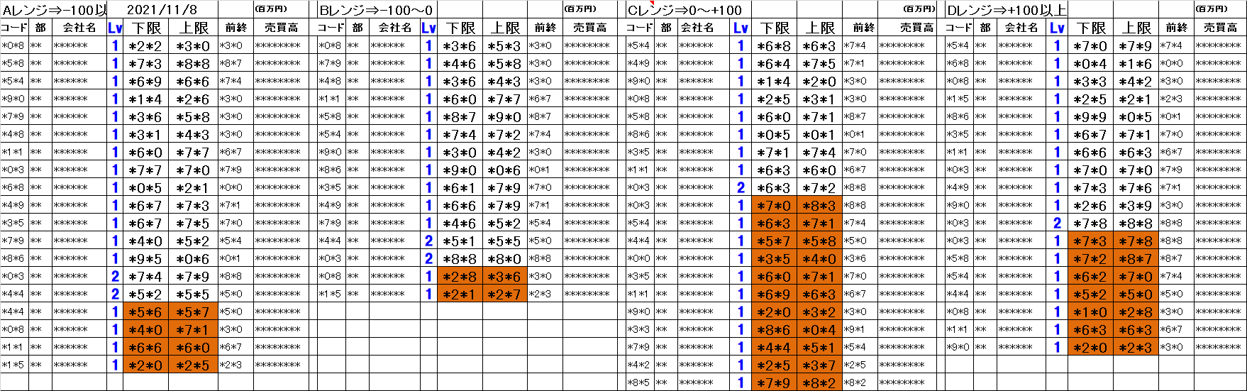 [Aレンジ:-100円以下][Bレンジ:-100円~±0][Cレンジ:±0~+100円][Dレンジ:+100円以上]