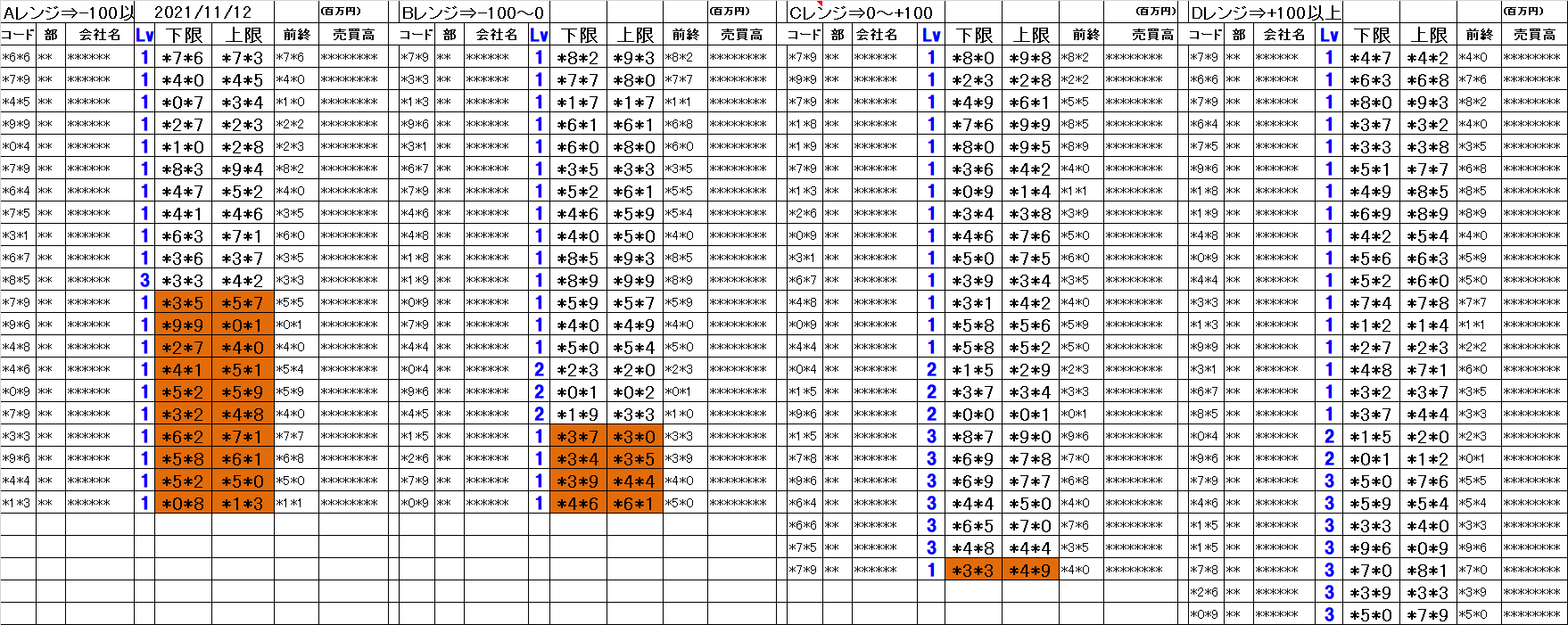 [Aレンジ:-100円以下][Bレンジ:-100円~±0][Cレンジ:±0~+100円][Dレンジ:+100円以上]