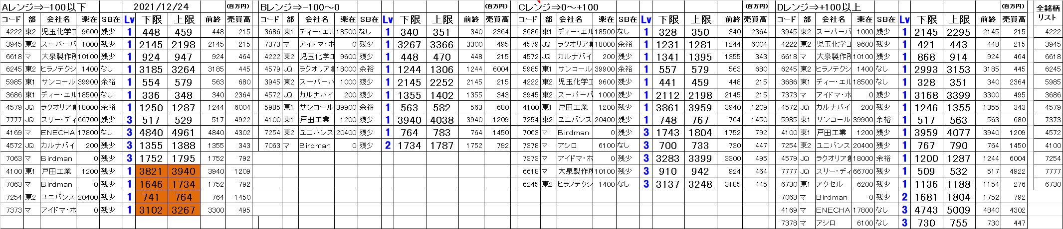 2021年12月24日 今日のシステムトレードの仕掛候補一覧です。