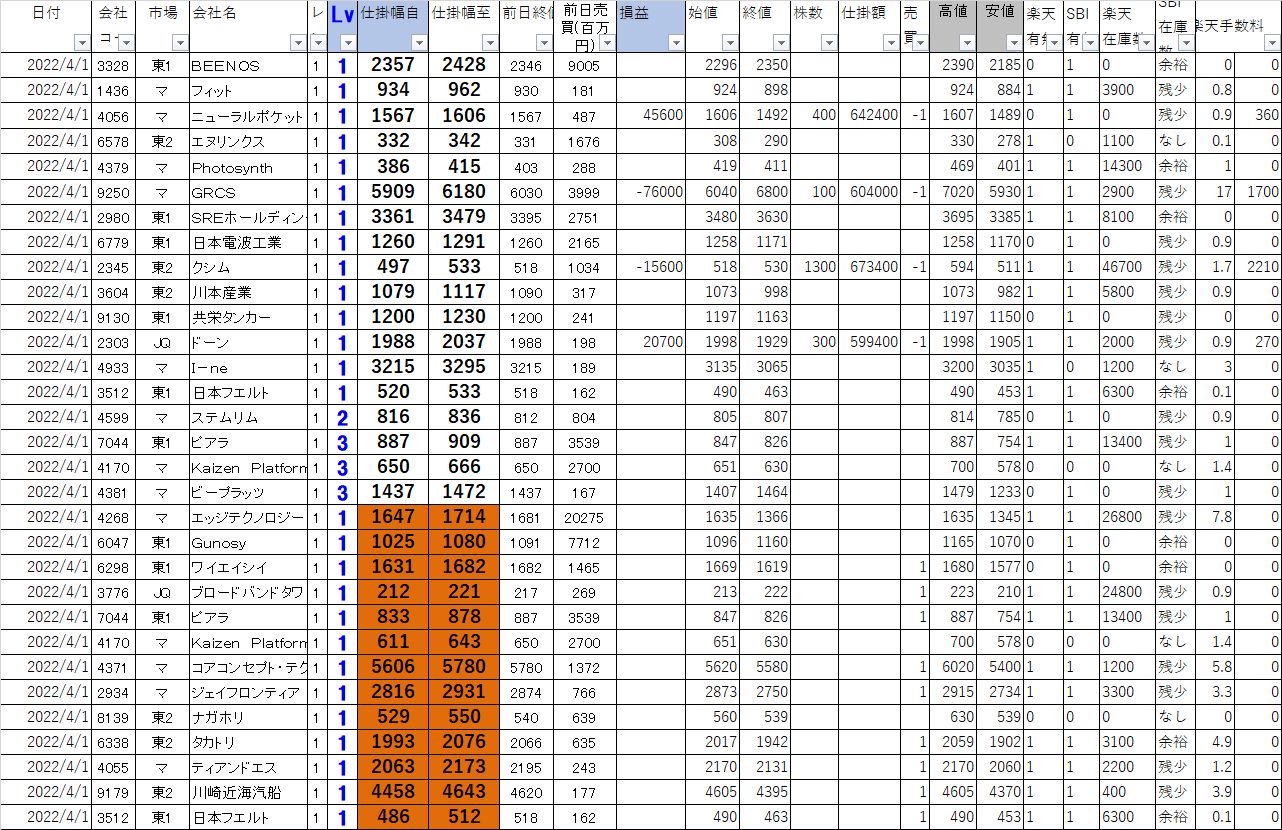 2022年4月1日 今日の寄り引けシステムトレードの損益を公開します