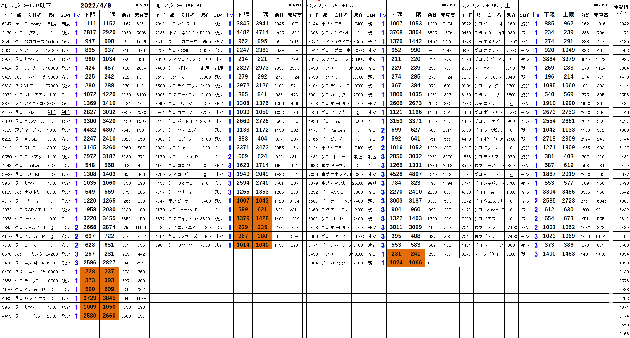 2022年4月8日 今日のシステムトレードの仕掛候補一覧です。