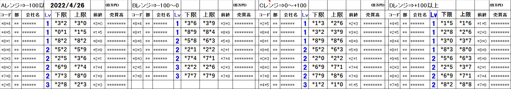 2022年4月26日 のシステムトレードの仕掛候補一覧はこんな感じです。