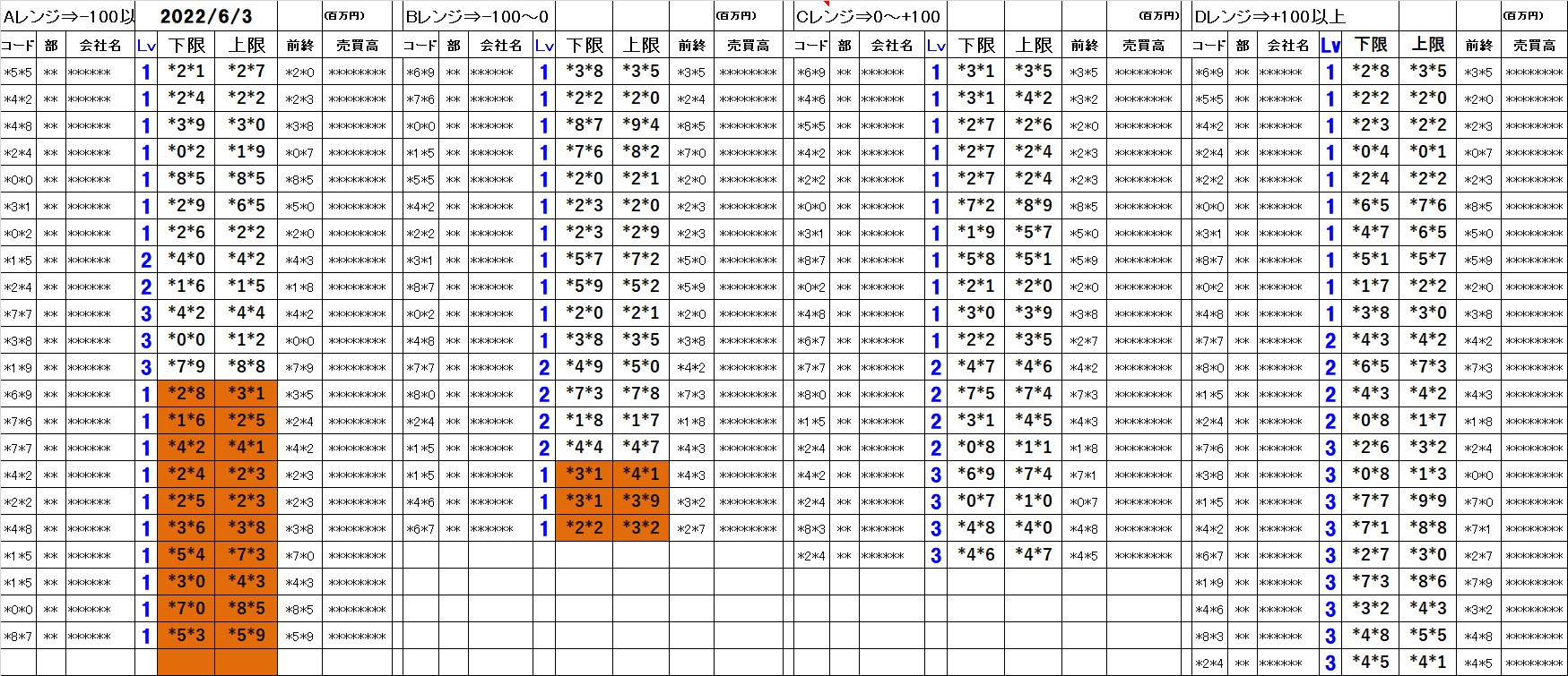 2022年6月3日 のシステムトレードの仕掛候補一覧はこんな感じです。