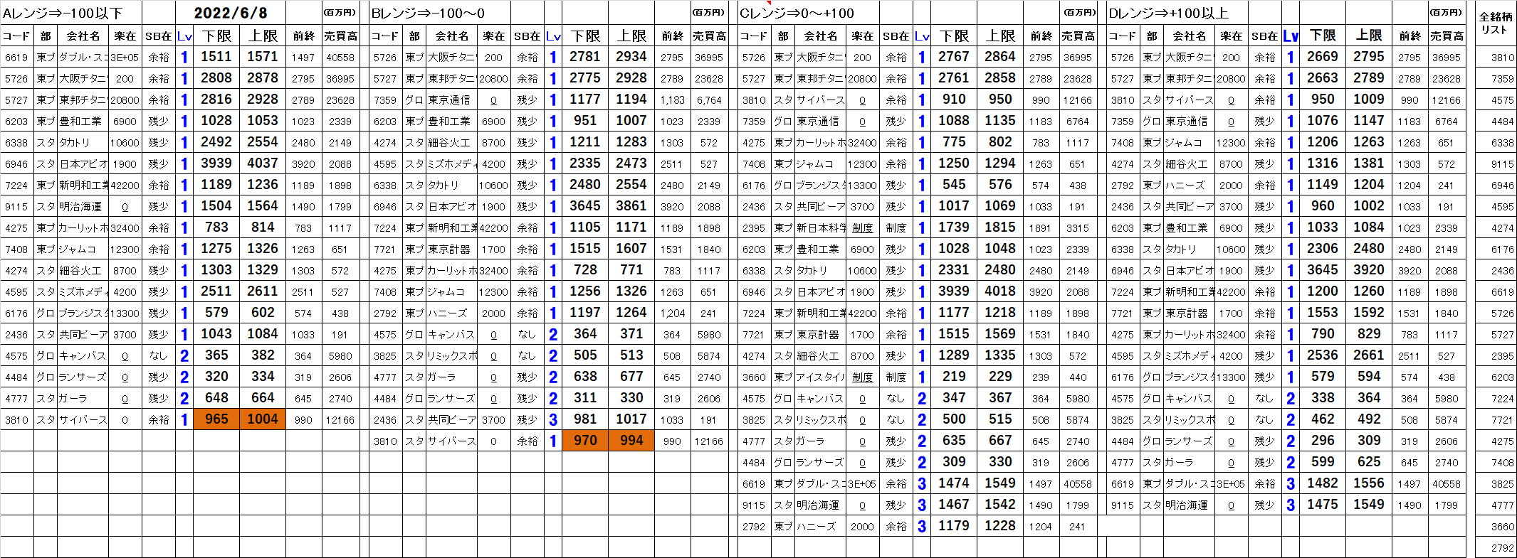 2022年6月8日 今日のシステムトレードの仕掛候補一覧です。