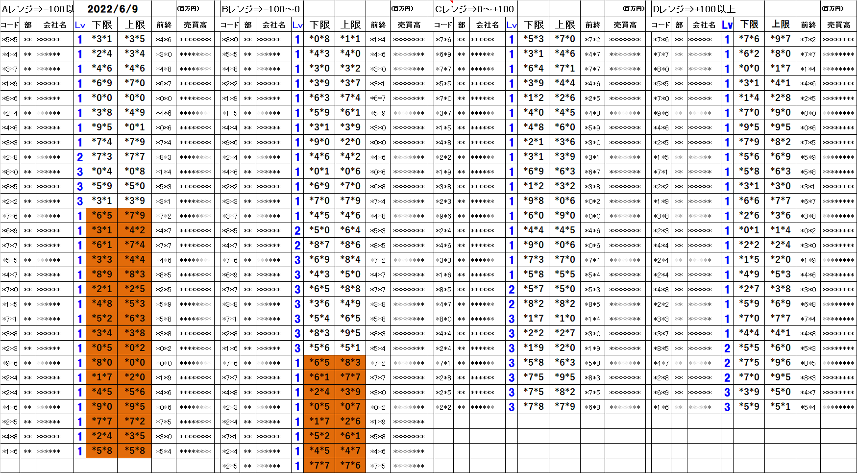2022年6月9日 のシステムトレードの仕掛候補一覧はこんな感じです。