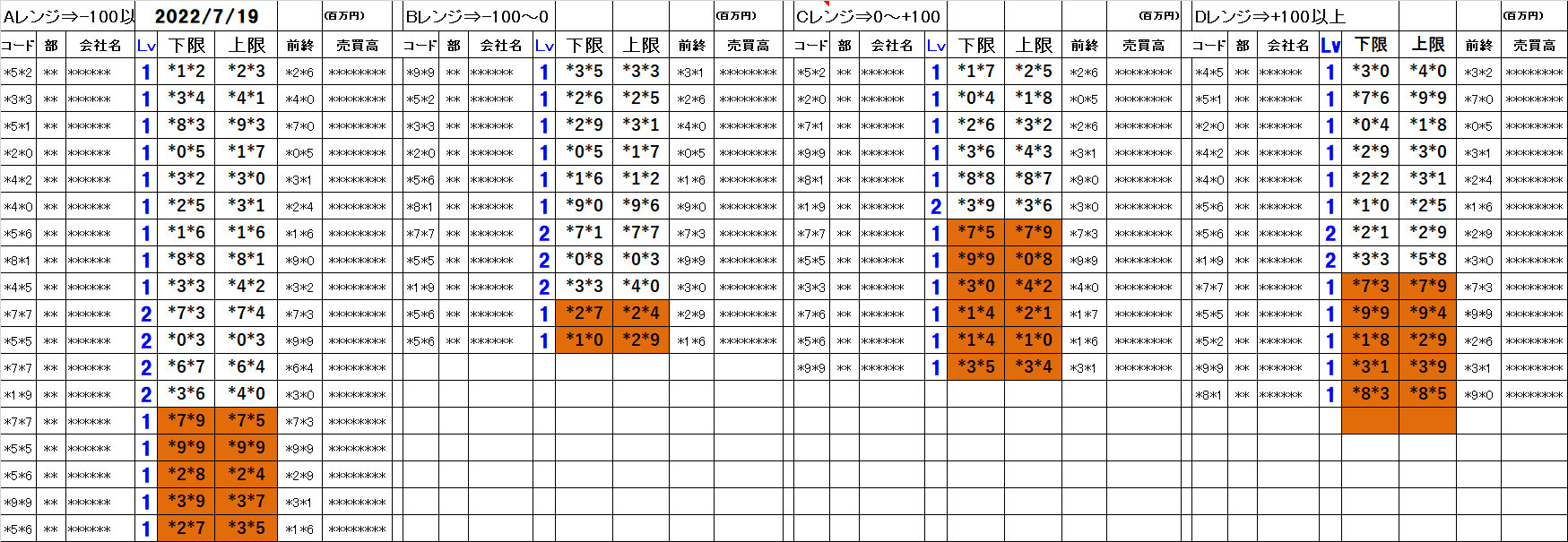 2022年7月15日 のシステムトレードの仕掛候補一覧はこんな感じです。