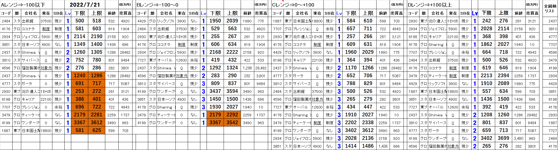 2022年7月21日 今日のシステムトレードの仕掛候補一覧です。