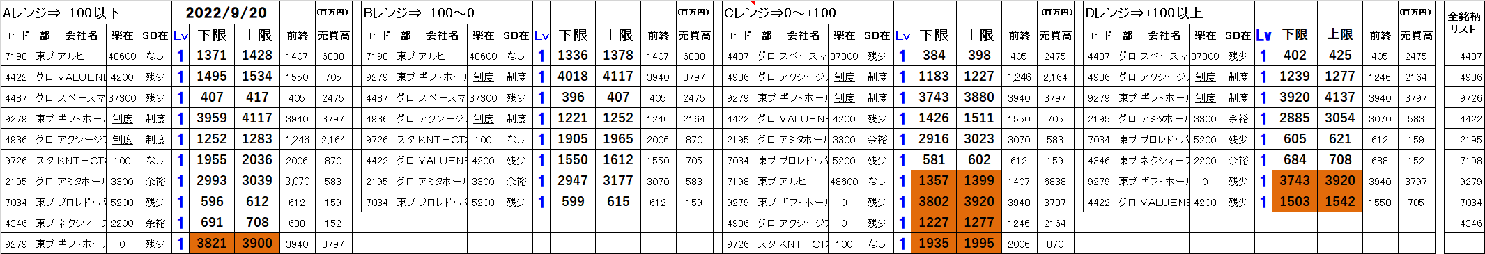 2022年9月20日 のシステムトレードの仕掛候補一覧はこんな感じです。