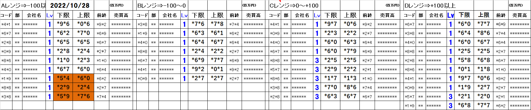 2022年10月28日 のシステムトレードの仕掛候補一覧はこんな感じです。