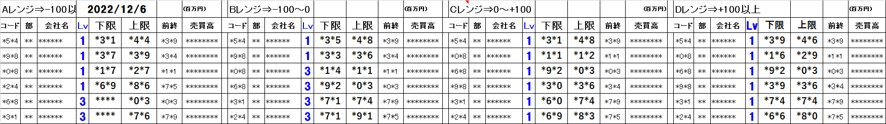 [Aレンジ:-100円以下][Bレンジ:-100円~±0][Cレンジ:±0~+100円][Dレンジ:+100円以上]
