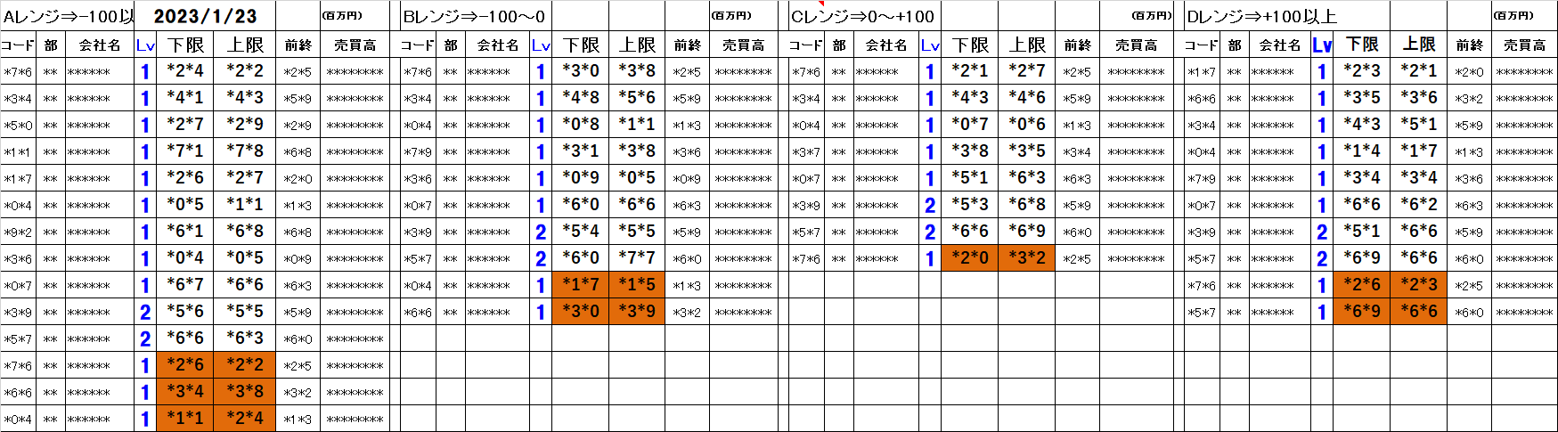 2023年1月23日 のシステムトレードの仕掛候補一覧はこんな感じです。