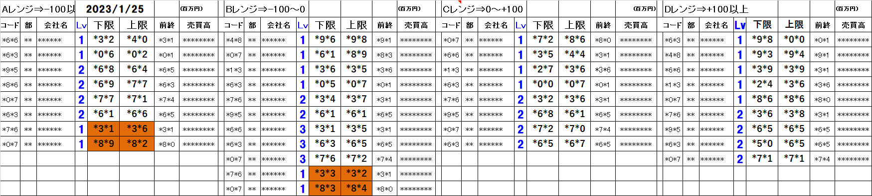 [Aレンジ:-100円以下][Bレンジ:-100円~±0][Cレンジ:±0~+100円][Dレンジ:+100円以上]
