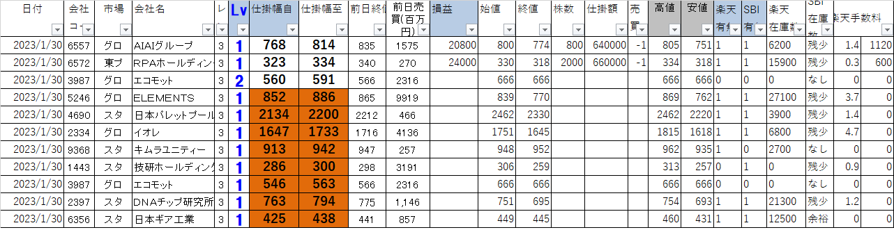 2023年1月30日 今日の寄り引けシステムトレードの損益を公開します