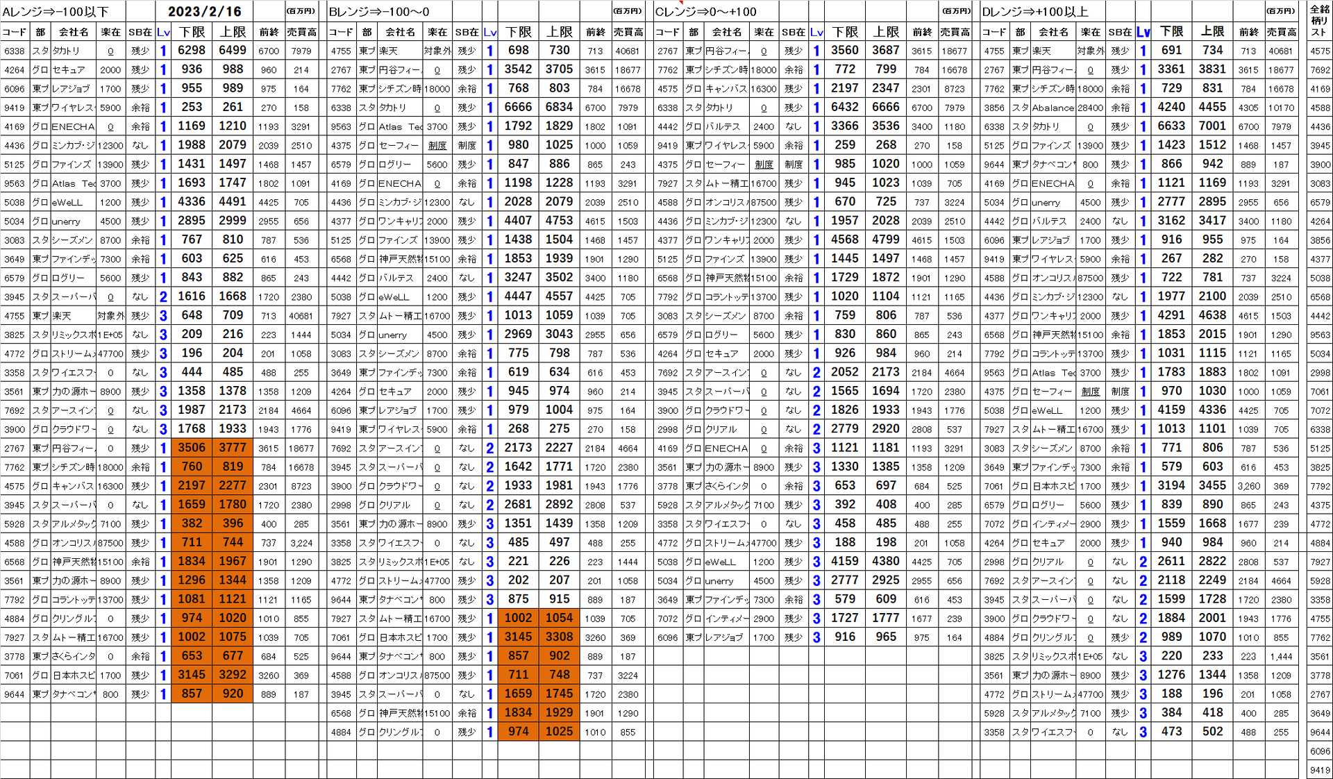 2023年2月16日 今日のシステムトレードの仕掛候補一覧です。
