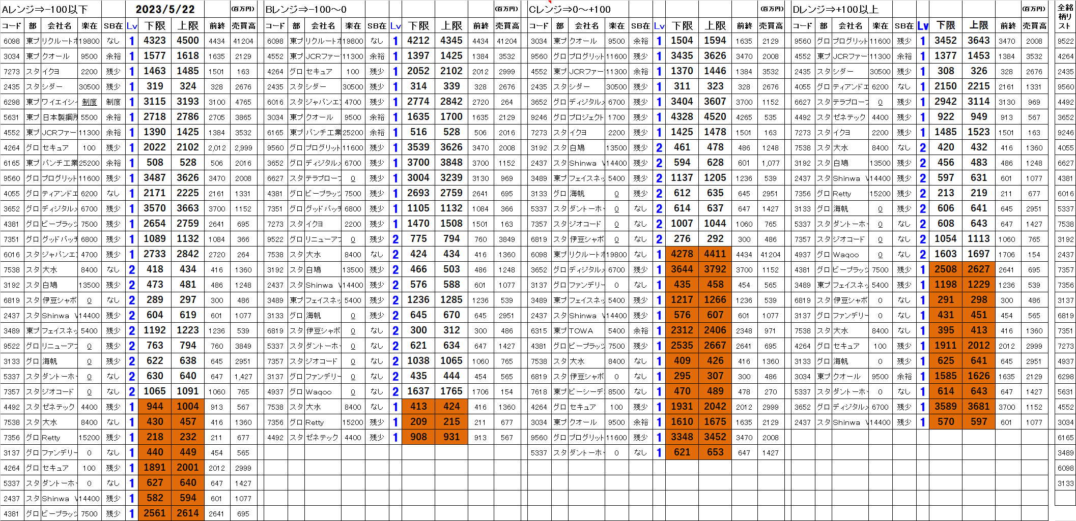 2023年5月22日 今日のシステムトレードの仕掛候補一覧です。
