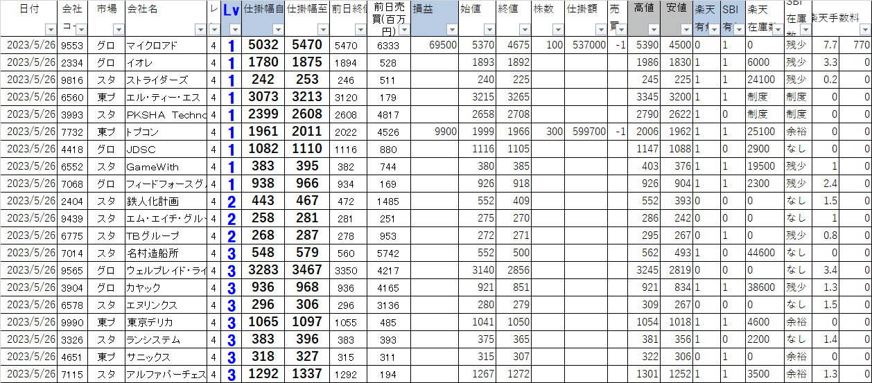 2023年5月26日 今日の寄り引けシステムトレードの損益を公開します