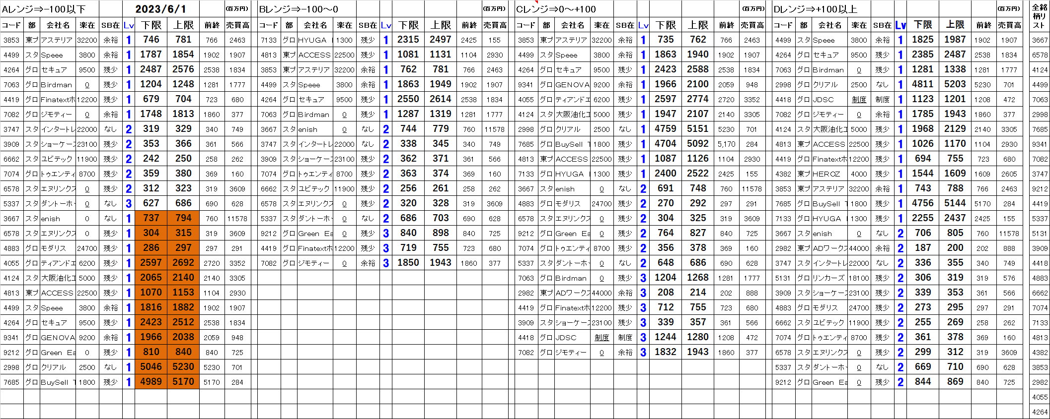 2023年6月1日 今日のシステムトレードの仕掛候補一覧です。