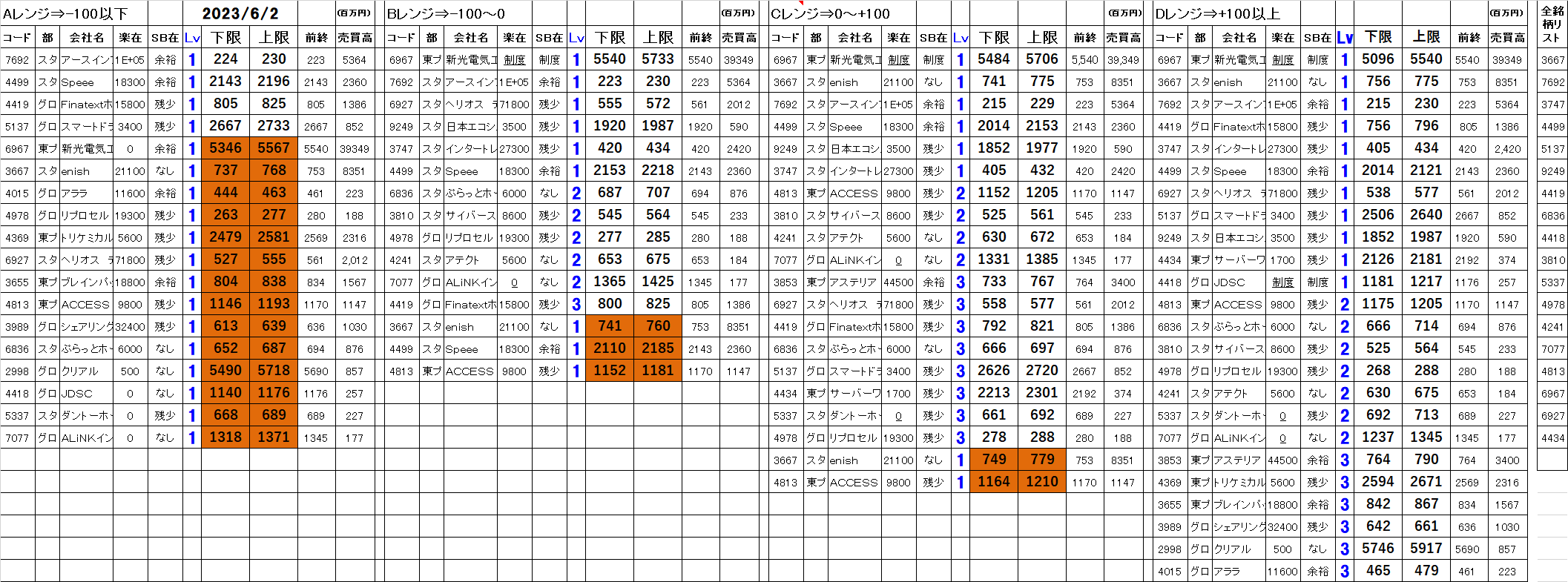 2023年6月2日 今日のシステムトレードの仕掛候補一覧です。