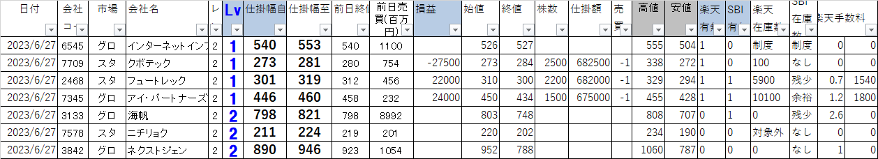 2023年6月27日 今日の寄り引けシステムトレードの損益を公開します