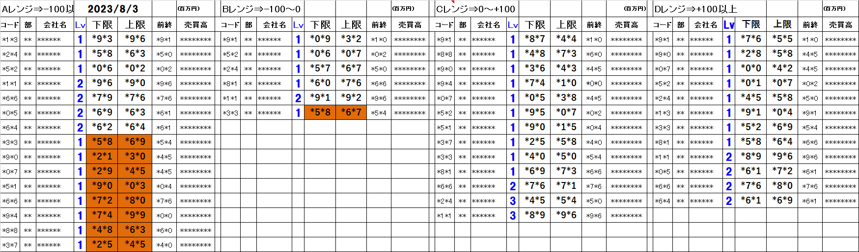 2023年8月3日 のシステムトレードの仕掛候補一覧はこんな感じです。
