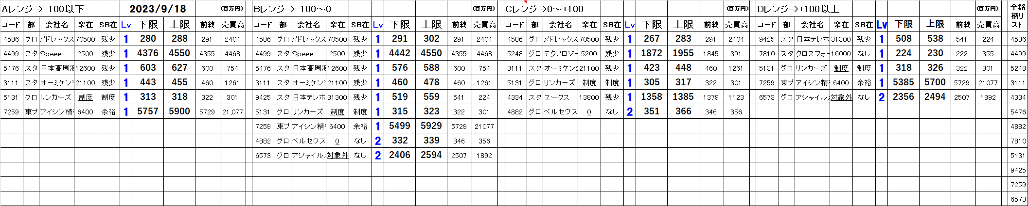 2023年9月19日 今日のシステムトレードの仕掛候補一覧です。