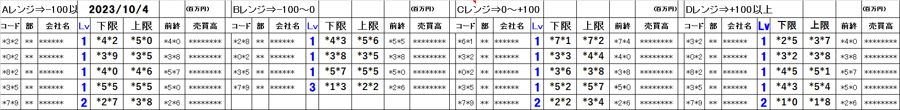 [Aレンジ:-100円以下][Bレンジ:-100円~±0][Cレンジ:±0~+100円][Dレンジ:+100円以上]