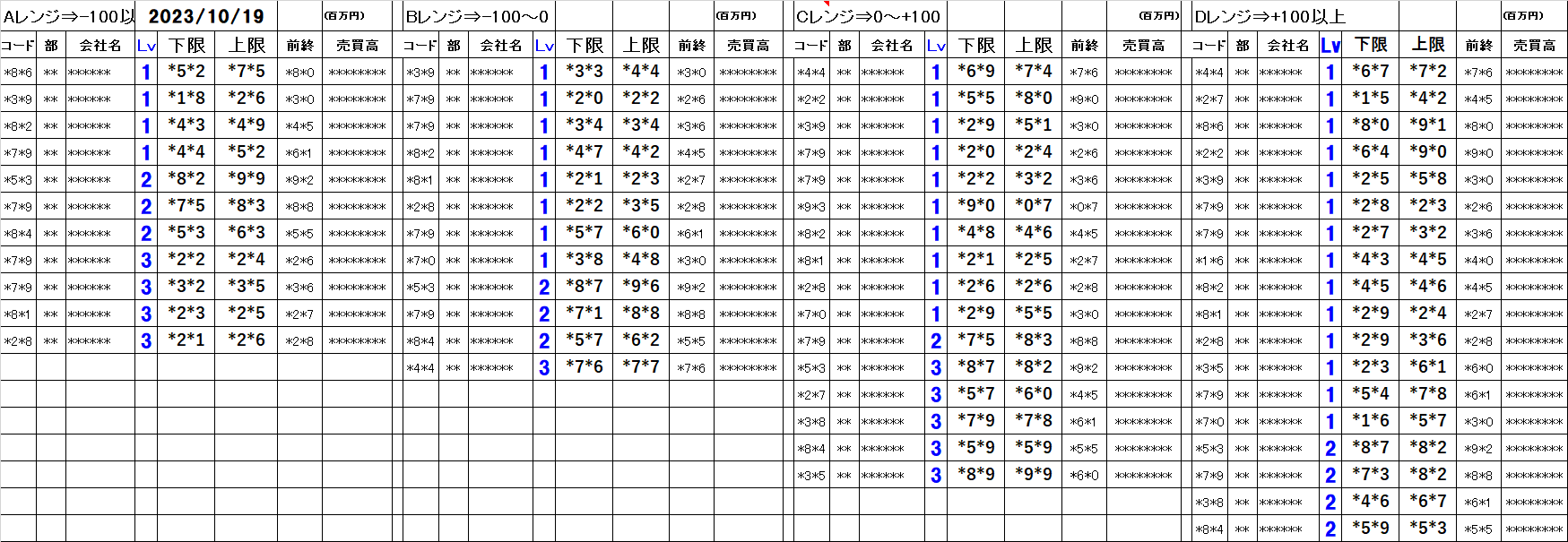 [Aレンジ:-100円以下][Bレンジ:-100円~±0][Cレンジ:±0~+100円][Dレンジ:+100円以上]