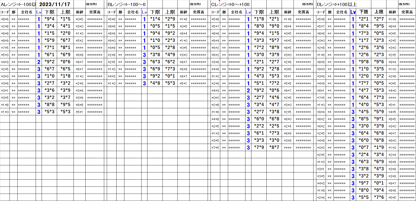 2023年11月17日 のシステムトレードの仕掛候補一覧はこんな感じです。