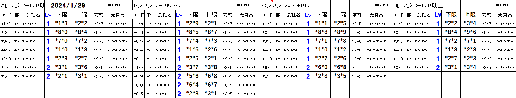 [Aレンジ:-100円以下][Bレンジ:-100円~±0][Cレンジ:±0~+100円][Dレンジ:+100円以上]