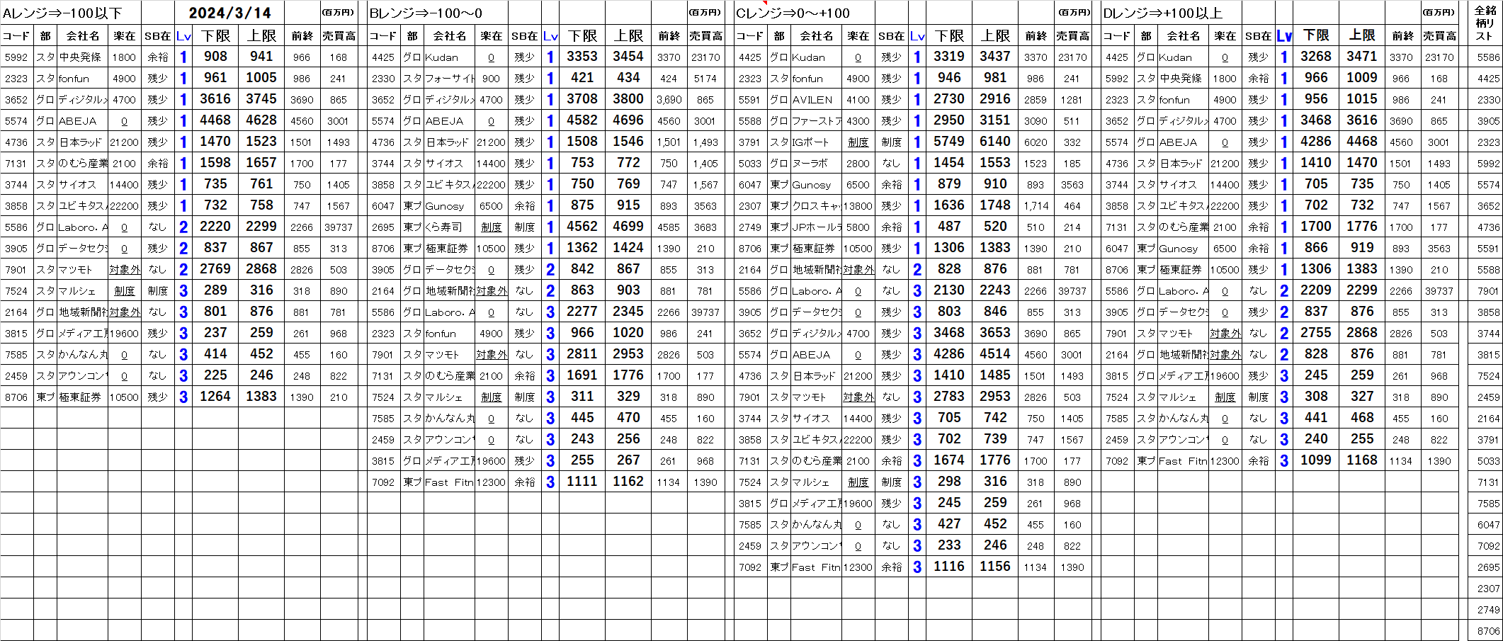 2024年3月14日 今日のシステムトレードの仕掛候補一覧です。