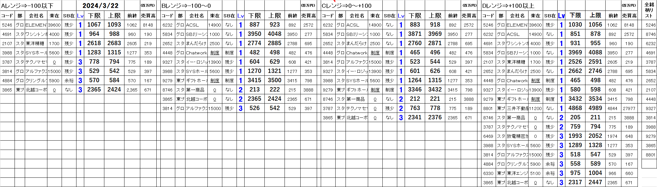 2024年3月22日 今日のシステムトレードの仕掛候補一覧です。