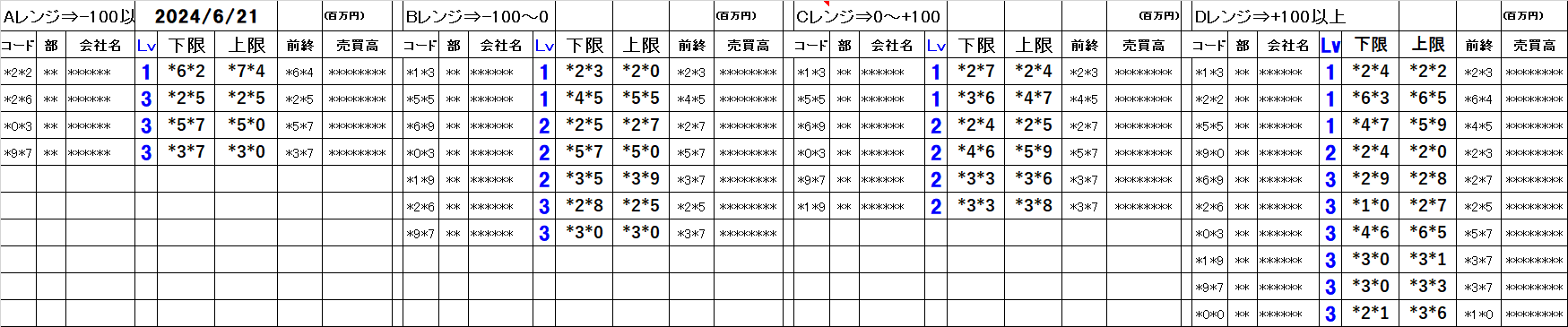 2024年6月21日 のシステムトレードの仕掛候補一覧はこんな感じです。