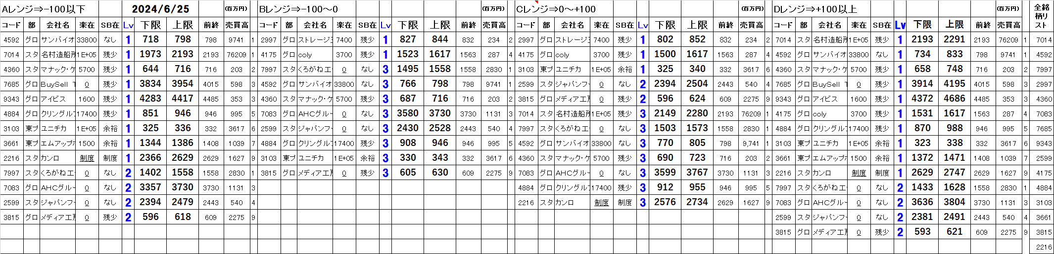 2024年6月25日 今日のシステムトレードの仕掛候補一覧です。