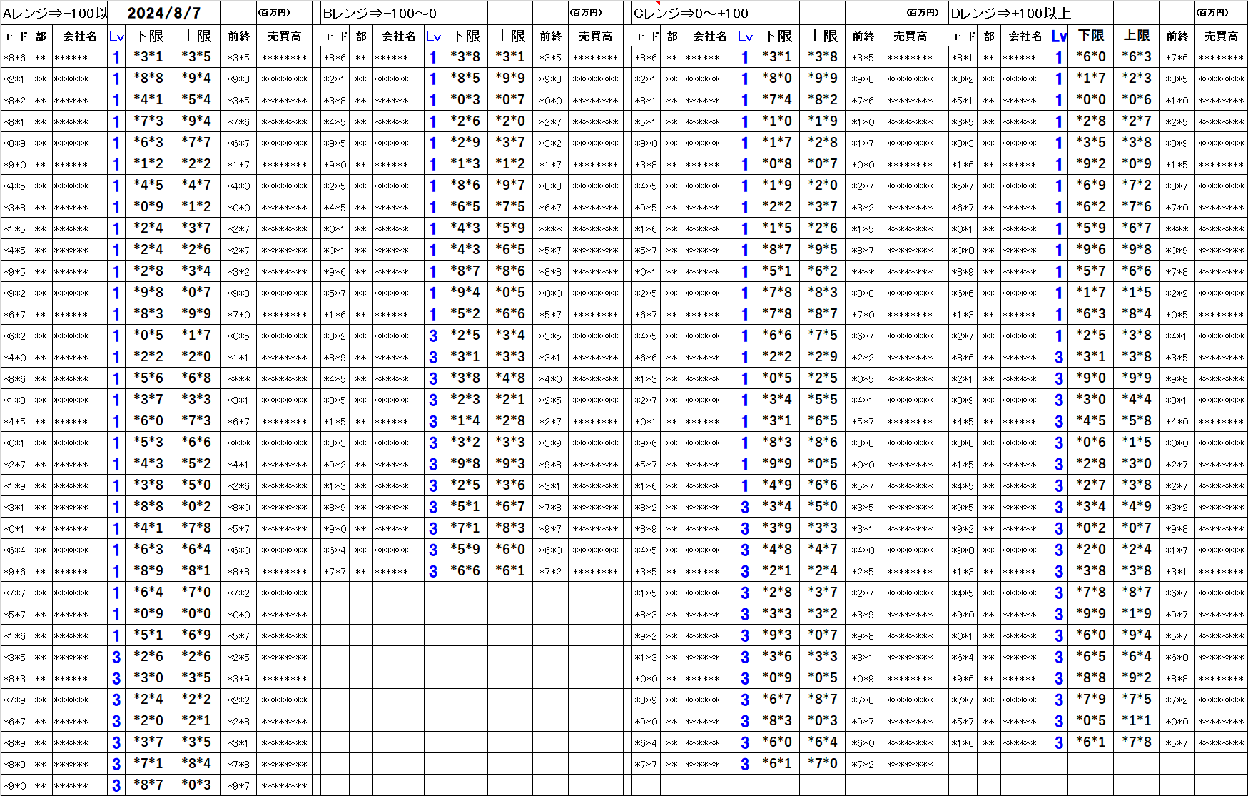 2024年8月7日 のシステムトレードの仕掛候補一覧はこんな感じです。