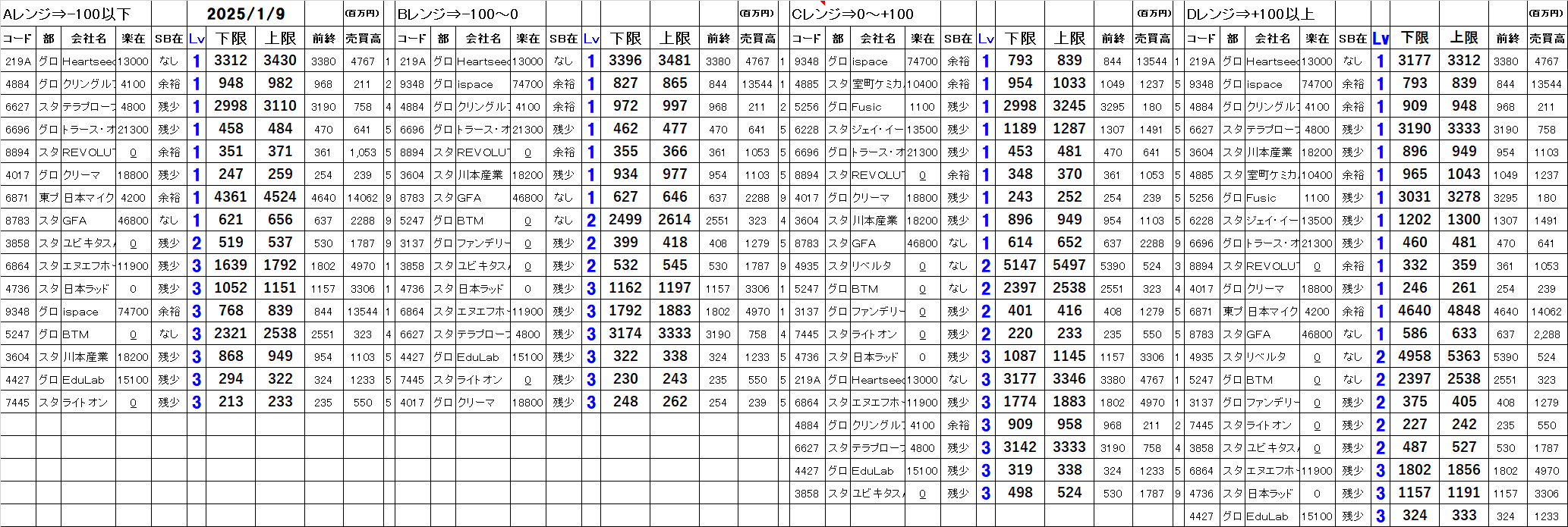 2025年1月9日 今日のシステムトレードの仕掛候補一覧です。
