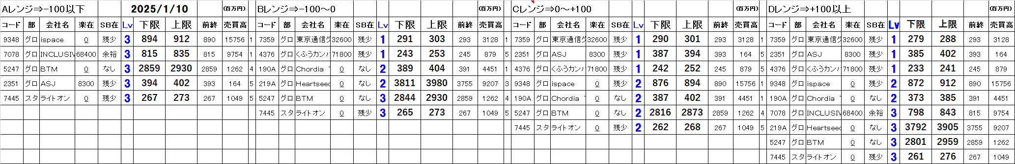 2025年1月10日 今日のシステムトレードの仕掛候補一覧です。
