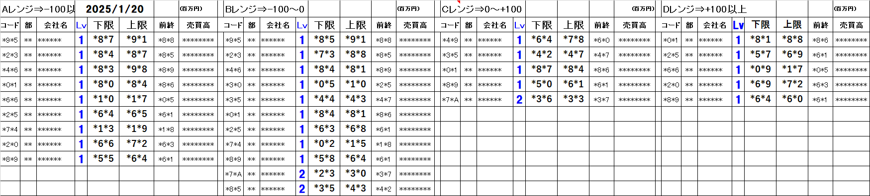 [Aレンジ:-100円以下][Bレンジ:-100円~±0][Cレンジ:±0~+100円][Dレンジ:+100円以上]