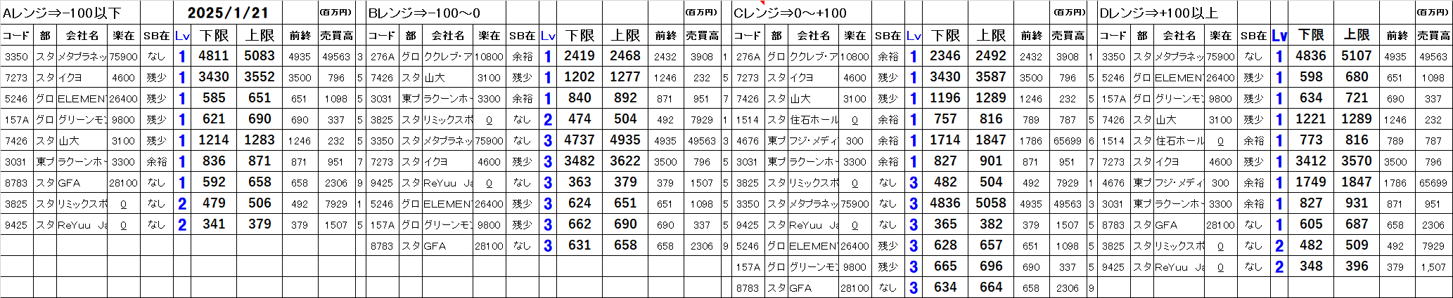 2025年1月21日 今日のシステムトレードの仕掛候補一覧です。