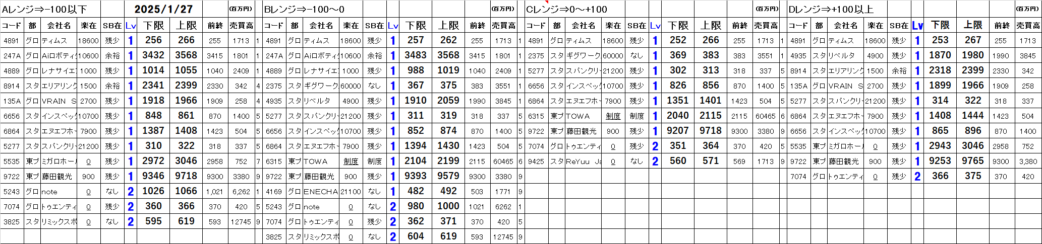 2025年1月27日 今日のシステムトレードの仕掛候補一覧です。