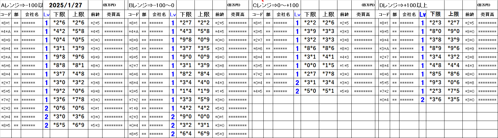 2025年1月27日 のシステムトレードの仕掛候補一覧はこんな感じです。