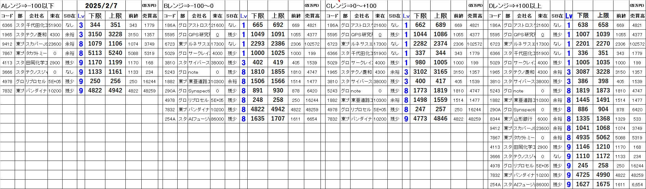 2025年2月7日 今日のシステムトレードの仕掛候補一覧です。