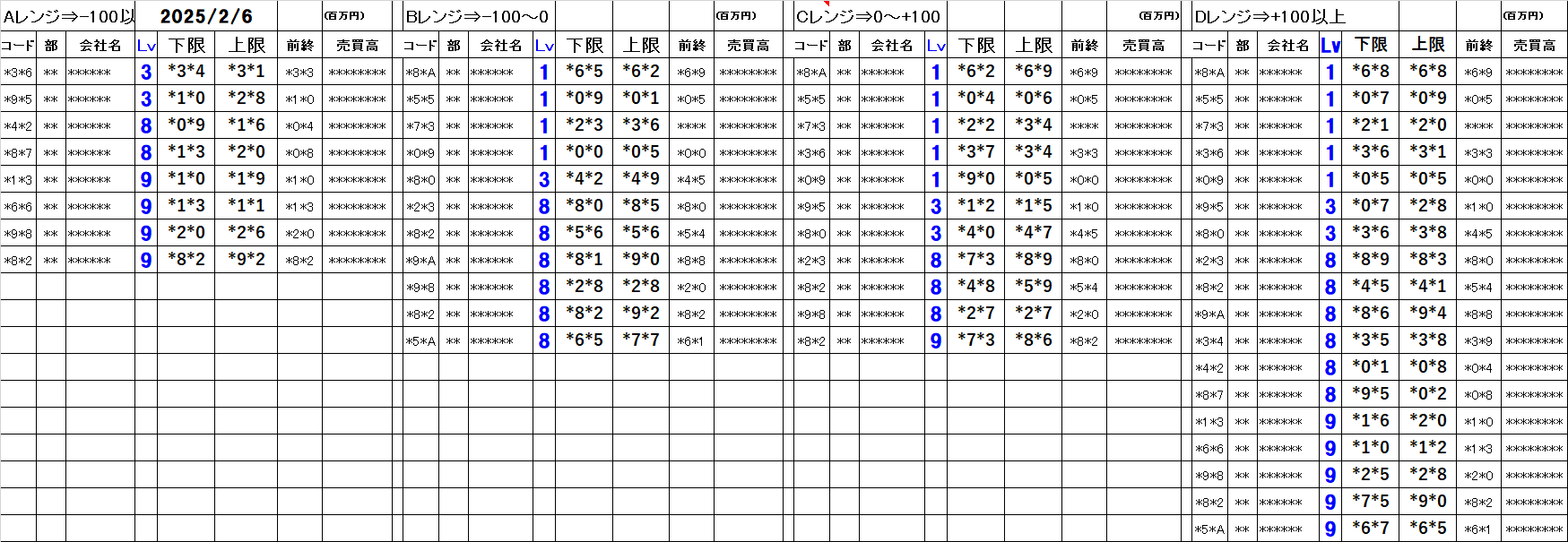 2025年2月7日 のシステムトレードの仕掛候補一覧はこんな感じです。