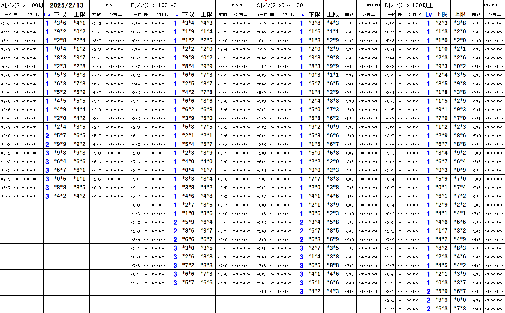 2025年2月13日 のシステムトレードの仕掛候補一覧はこんな感じです。